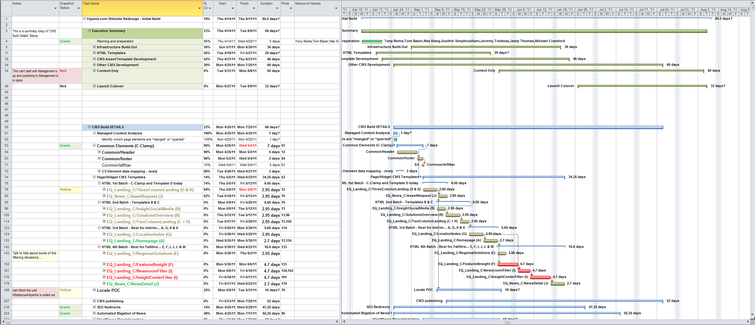 I have generated many detailed project plans using MS Project and other other tools like SmartSheet and OmniPlan. This has enabled me to manage waterfall projects at a granular level with dependencies and tasks assigned to client and agency project contributors.