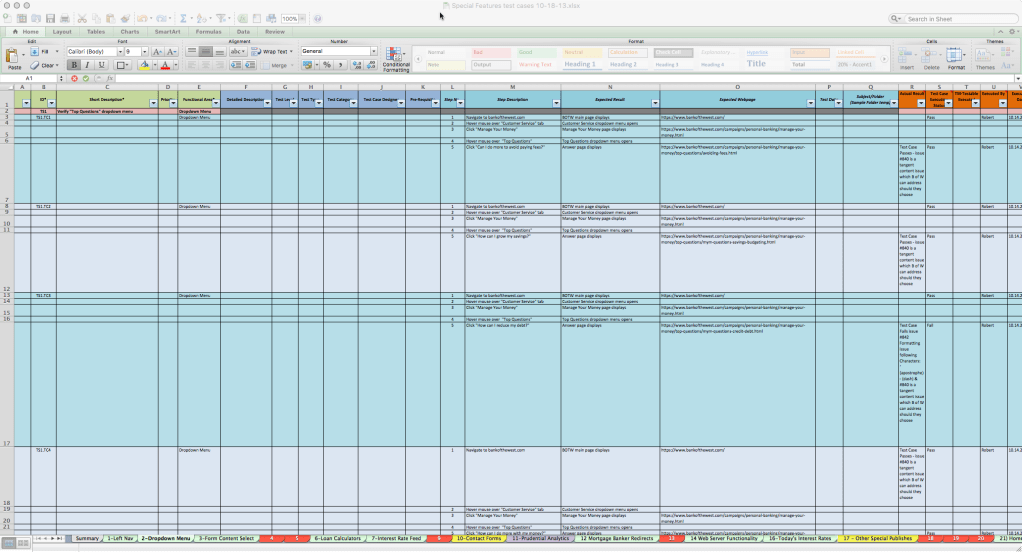 Ad Hoc and detailed test planning for various client including Bank of the West, AAA, Palo Alto Networks, and Salesforce. At Rauxa I built the initial internal agency QA Team. I developed tools and processes for QA scoping and guided project implementation QA Testing and UAT.